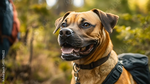 Happy Brown Dog Hiking In Woods