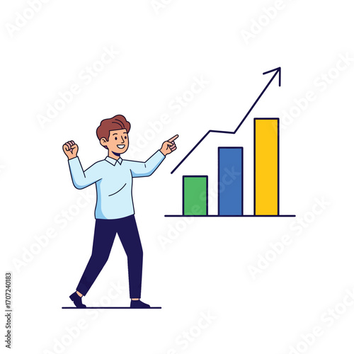 Happy Businessman Celebrating Financial Growth with Bar Chart.