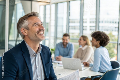 Happy businessman participating in a team meeting