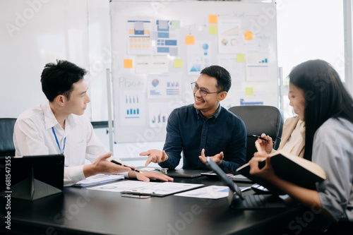 Happy businesspeople while collaborating on a new project in an office. Group of diverse businesspeople