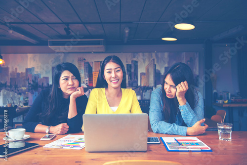 Happy businesswoman using laptop in the office.woman working on a laptop in cafe.