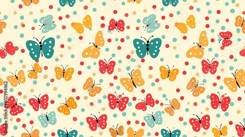 happy butterfly with color dots, seamless pattern nursery design cartoon style illustration with grungy texture, Generative Ai