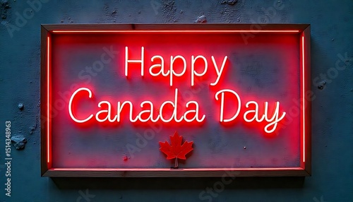 Happy Canada Day framed by red maple leaves on grey wood, autumn leaves scattered, Happy Canada Day July 1 greeting web banner design template with red maple leaf, created with generative ai