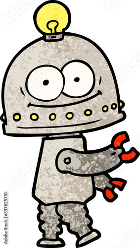 happy carton robot with light bulb