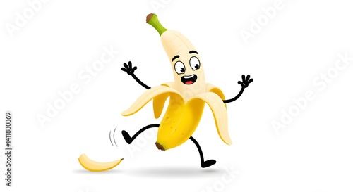 Happy Cartoon Banana Character Slipping on Its Peel
