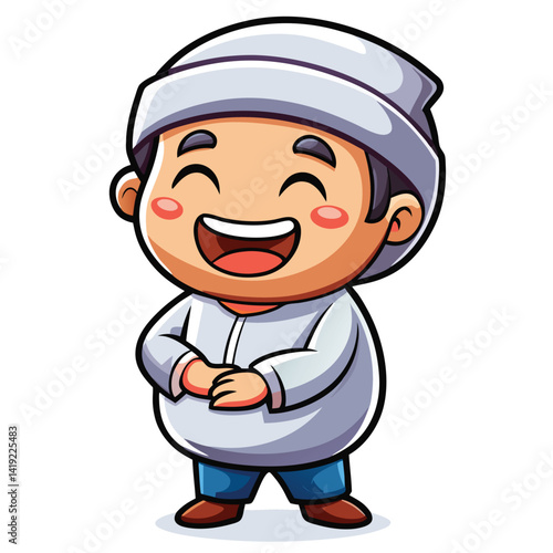 Happy cartoon character in traditional attire