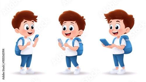 Happy Cartoon Character with Smartphone in Vector Style Illustration