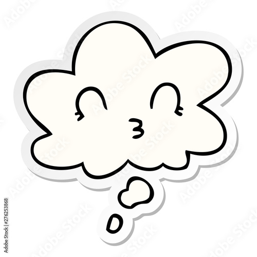 happy cartoon face and thought bubble as a printed sticker