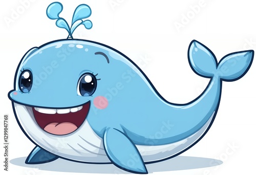 Happy Cartoon Whale Illustration with Big Smile and Water Spout