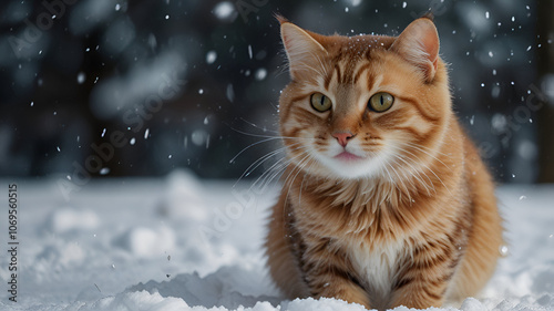 Happy cat playing in snow in winter