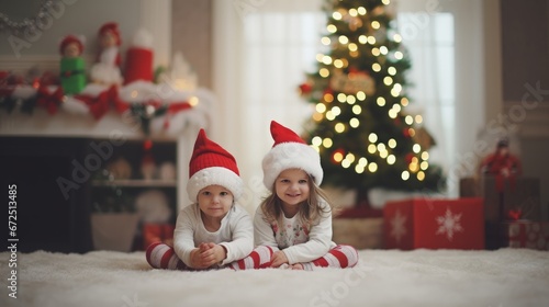 Happy child in cozy festive Christmas vibe. Christmas background with baby