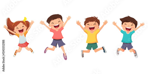 happy children jumping and laughing, a flat vector illustration isolated on a white background with a clipping path.