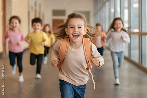 Happy Children Running in a School Hallway | Excitement and Joy of School Life