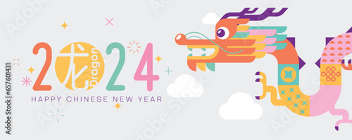 Happy Chinese new year 2024, the year of the dragon zodiac sign (Translation : dragon).