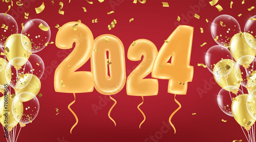 Happy chinese new year 2024 year of asian elements background. Golden Confetti Falling On red Background