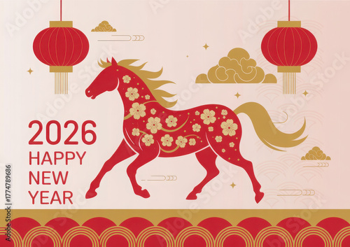 Happy chinese new year 2026. Horse is a symbol of the 2026 Chinese New Year. Figure of Horse