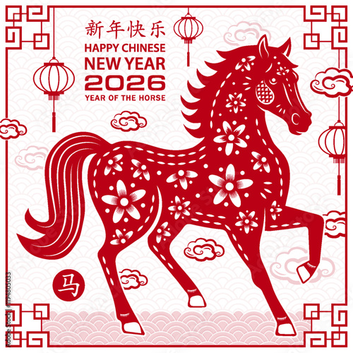 Happy Chinese new year 2026 horse Zodiac sign on color background