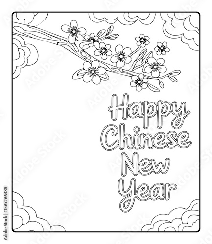 Happy chinese new year coloring page for kids of flower decoration outline vector line art illustration for kids book design