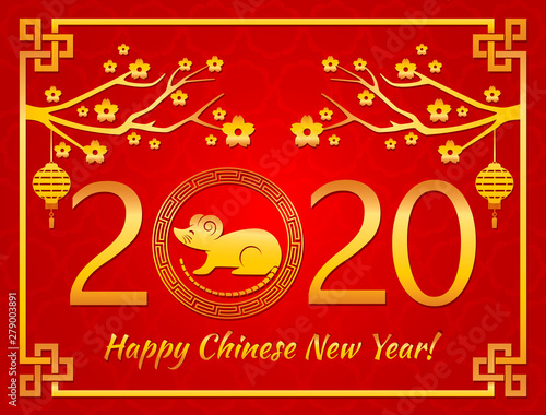 Happy Chinese New Year. The white rat is the symbol of 2020, the Chinese year of the new year.
