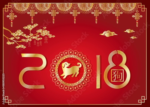 Happy Chinese new year. Year of the dog. Red and gold color. Vector illustration.