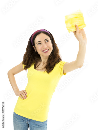 Happy cleaning lady