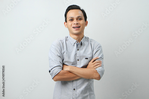 happy confident asian indonesian man on isolated background