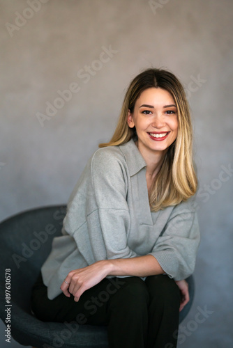 Happy confident professional business woman in office, portrait. Smiling lady corporate leader