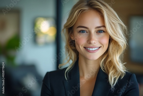 Happy Corporate Woman with Blue Eyes and White Teeth