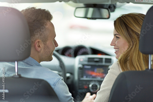Happy couple sitting in a car