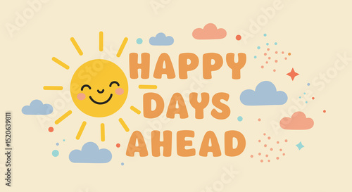 Happy Days Ahead Motivational Quote with Cheerful Sun and Colorful Clouds for Positive Vibes