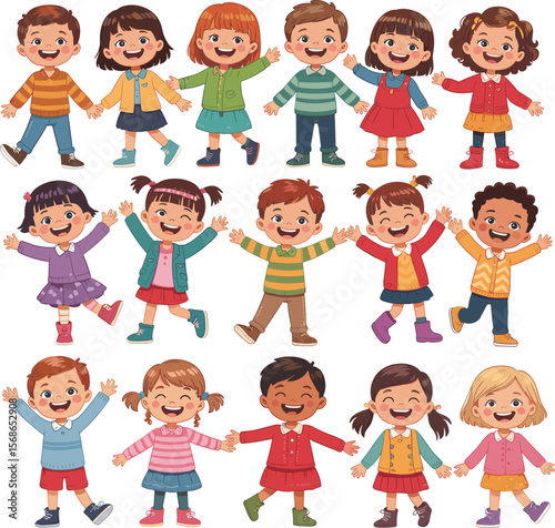 Happy diverse group of children holding colorful balloons in a sunny outdoor setting, celebrating joy, friendship, and playful childhood moments
