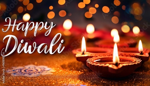 Happy Diwali Poster with Diya Lamp Poster Design