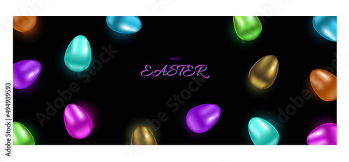 Happy Easter background with shiny colorful eggs.Easter banner,poster for sociel media.Vector illustration