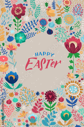 Happy Easter modern brush calligraphy. Ink illustration. Isolated on floral background. - Vector illustration