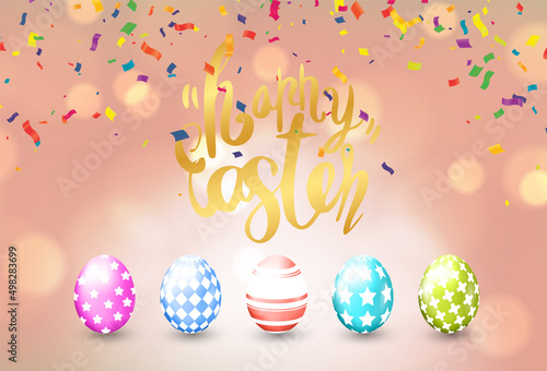Happy Easter wreath with easter Website header or banner design. Easter sale Holiday background with painted eggs, gift,