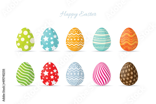 Happy Easter.Set of Easter eggs with different texture on a white background.Vector Illustration.