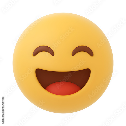 Happy Face Emoji with Open Mouth and Closed Eyes for Joyful Expression Transparent Background