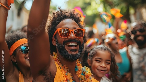 Happy Family Celebrating Carnival in Colorful Outfits