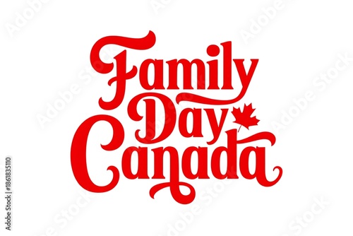 Happy Family Day Canada celebration with red maple leaf holiday greeting