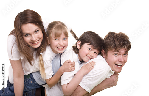 Happy family mother, father, daughter and son.
