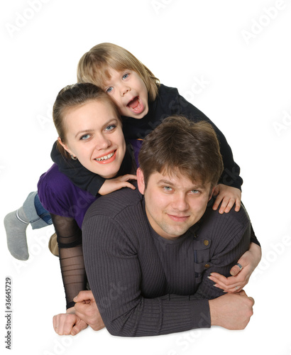 Happy family mum, the daddy, the son