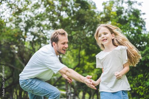 Happy family parent children having picnic outdoor activity. Enjoy happiness moment summer playing together including father mother son and daughter relaxing in the morning sunrise.