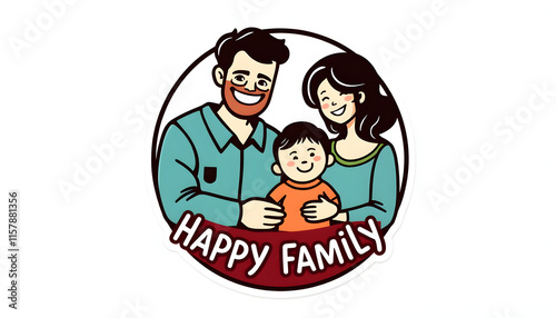 Happy family png badge sticker, parenthood in oval shape photo, transparent background, Paper Cutout style. isolated with white highlights