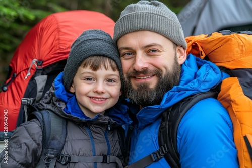 happy family spending time together outdoor Lifestyle capture, rural cozy scene Father, mother and son walking in forest