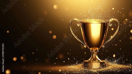 Happy Father's Day card, best father ever poster or banner with golden winner cup