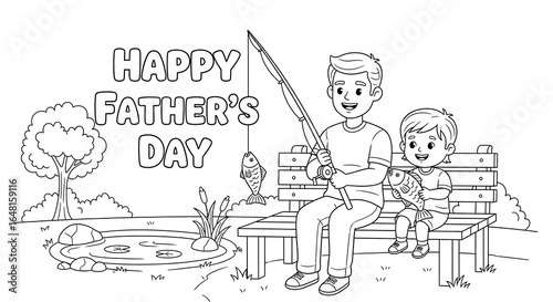 Happy Father's Day: Father and Son Fishing Coloring Page Illustration