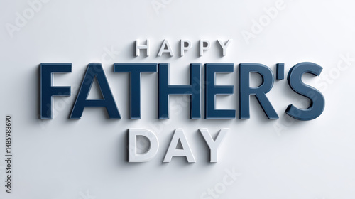 Happy Father's Day Greeting Card Design Blue and White 3D Text