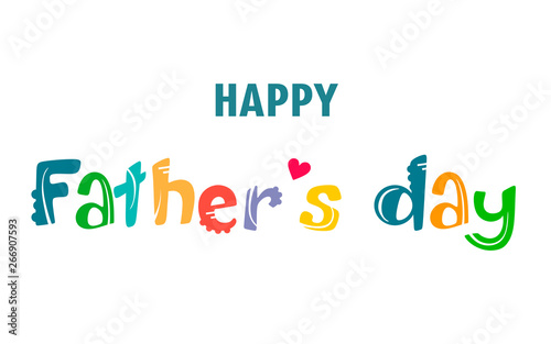 Happy Father's Day handwritten card. Vector cartoon and bright handwritten text on white background.
