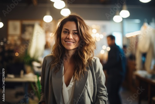 Happy female fashion designer looking