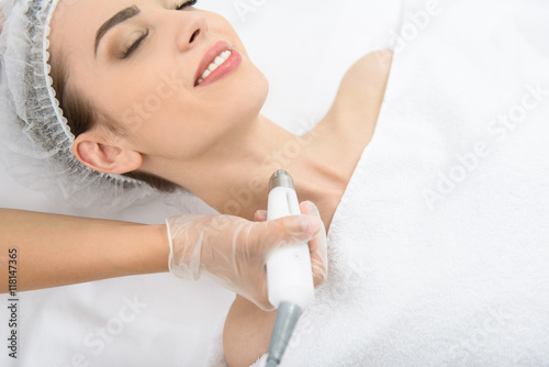 Happy girl having stimulating rejuvenation therapy